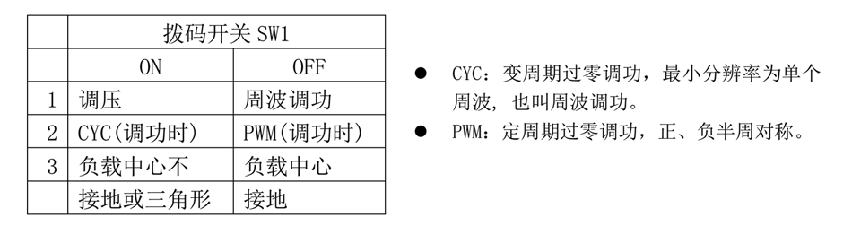 SW1-1=ON 时,调压。SW1-1=OFF 时,调功。